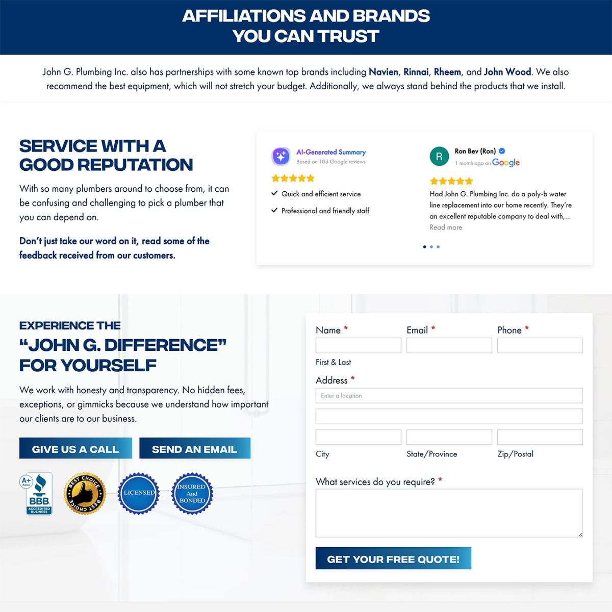 When John G Plumbing connected with Websites Made With Love, they already had a solid local reputation, but their online presence didn’t reflect their level of professionalism.