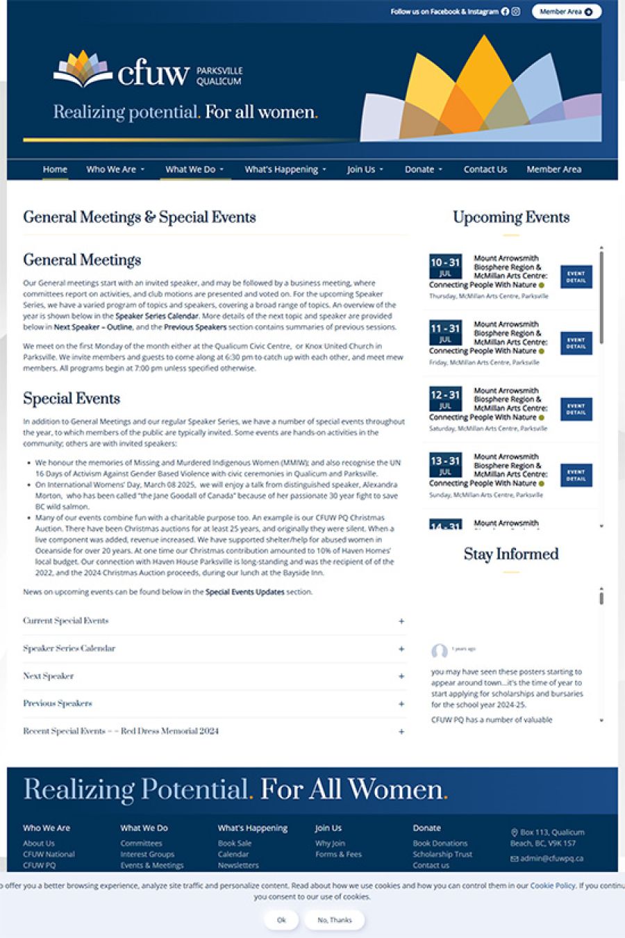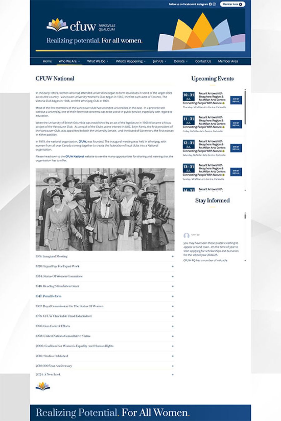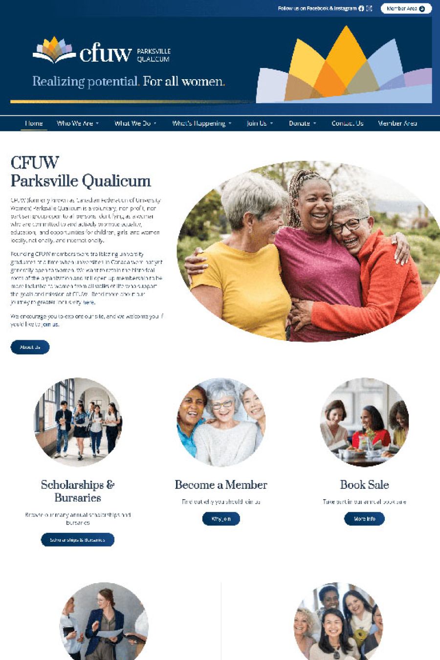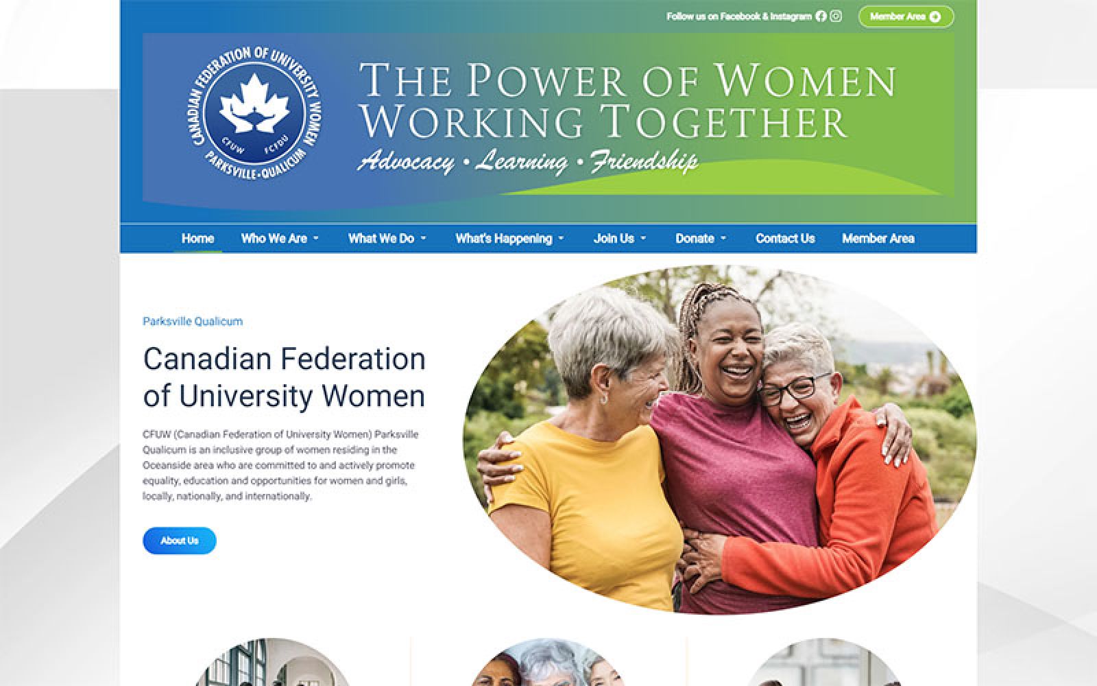 When CFUW Parksville/Qualicum came to Websites Made With Love, they had a clear mission: to promote advocacy, friendship, and learning through community connection, educational scholarships, and meaningful events.